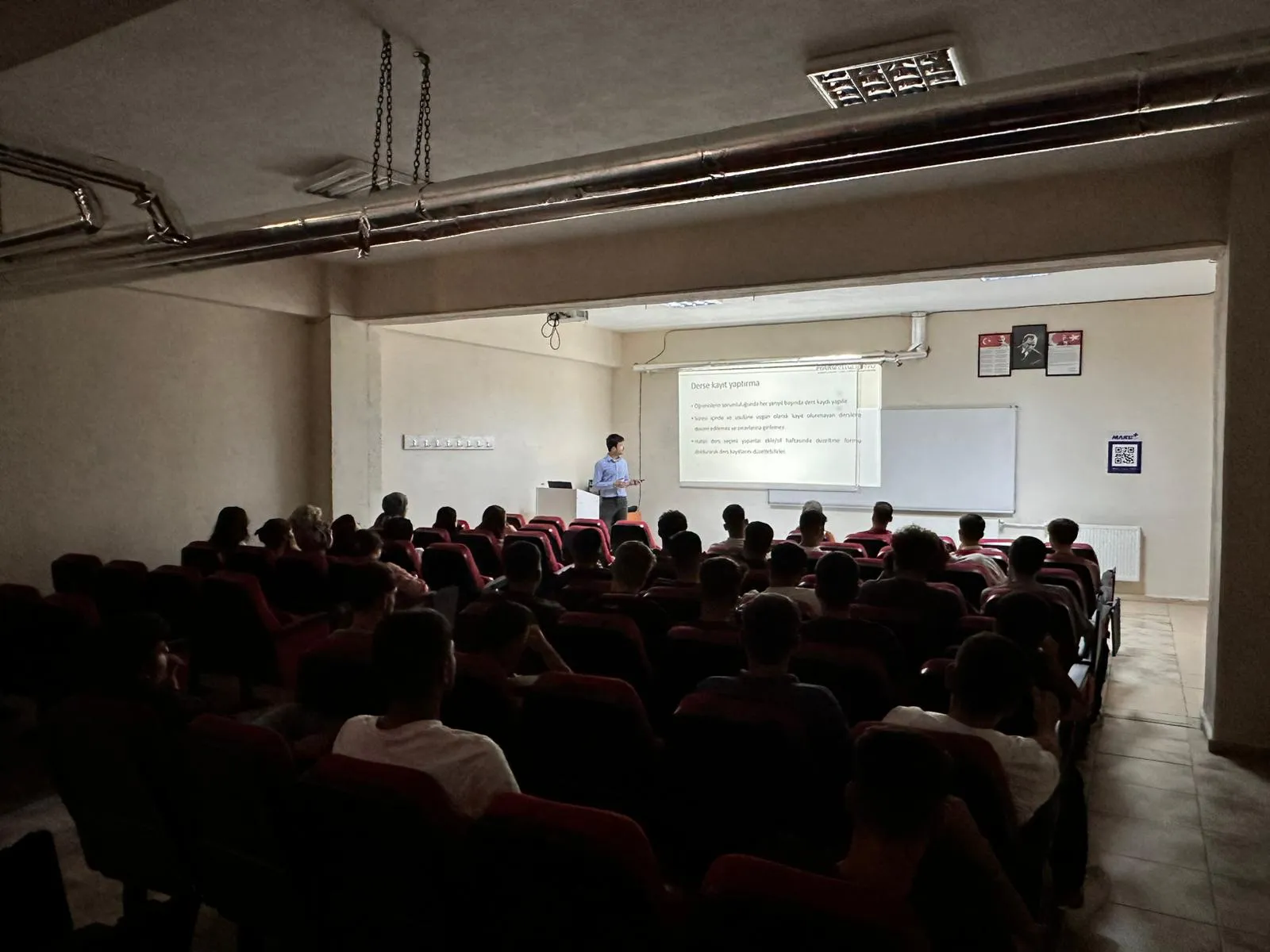 Oryantasyon eğitimi süresince öğrencilerimize okulumuzun akademik işleyişi, idari süreçler, sosyal imkânlar ve öğrenim hayatına uyum süreci hakkında bilgiler verildi. Program sonunda öğrencilerin soruları yanıtlanarak yol gösterici açıklamalarda bulunuldu.